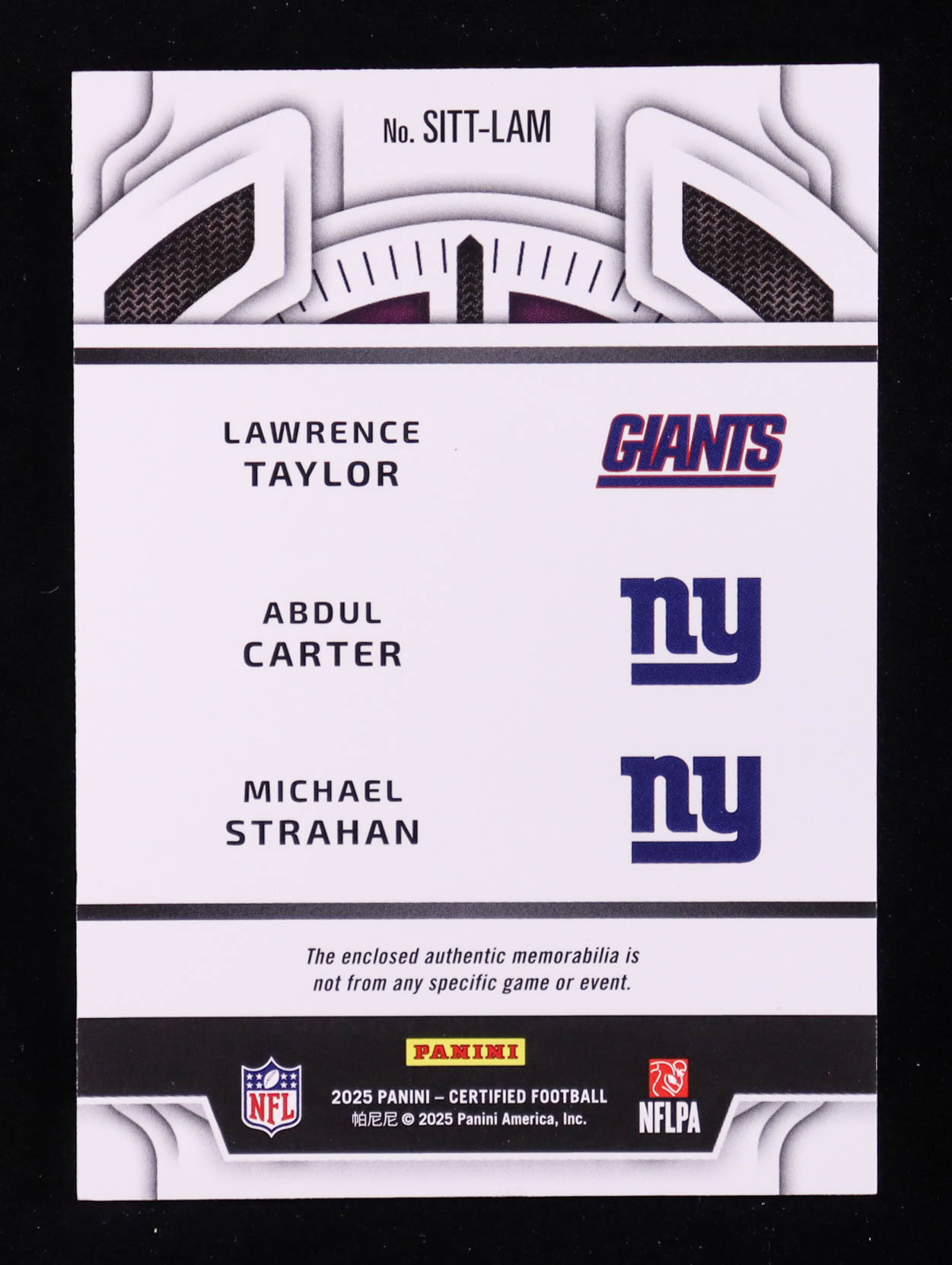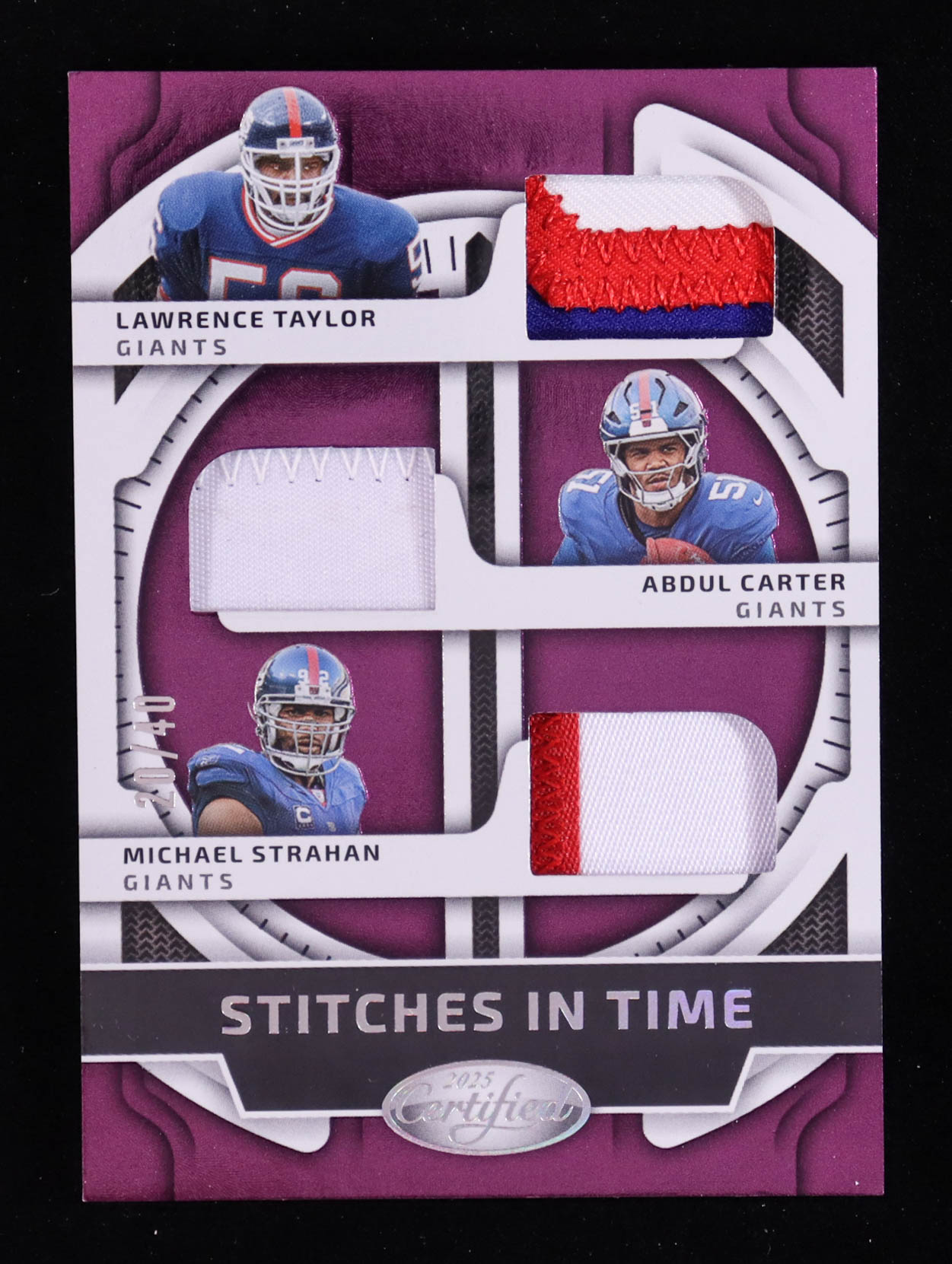 Lawrence Taylor / Abdul Carter / Michael Strahan 2025 Certified Stitches in Time Triples Mirror Purple Etch #5 #20/40