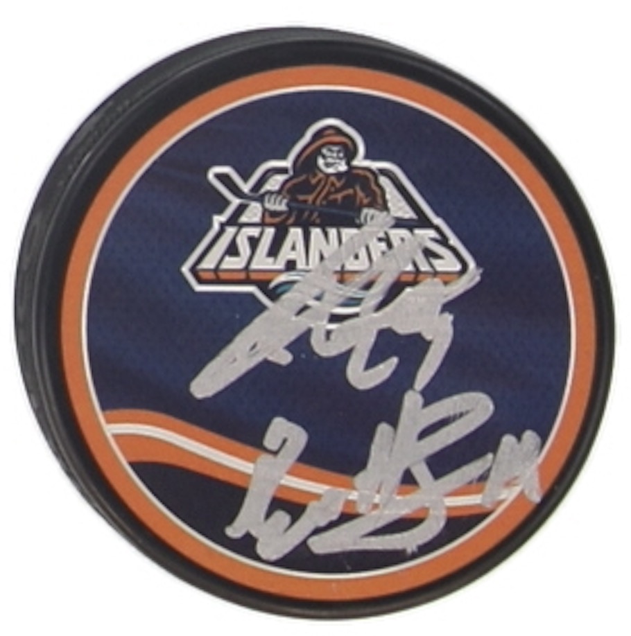 Bo Horvat & Andre Lee Signed Islanders Logo Hockey Puck (JSA)