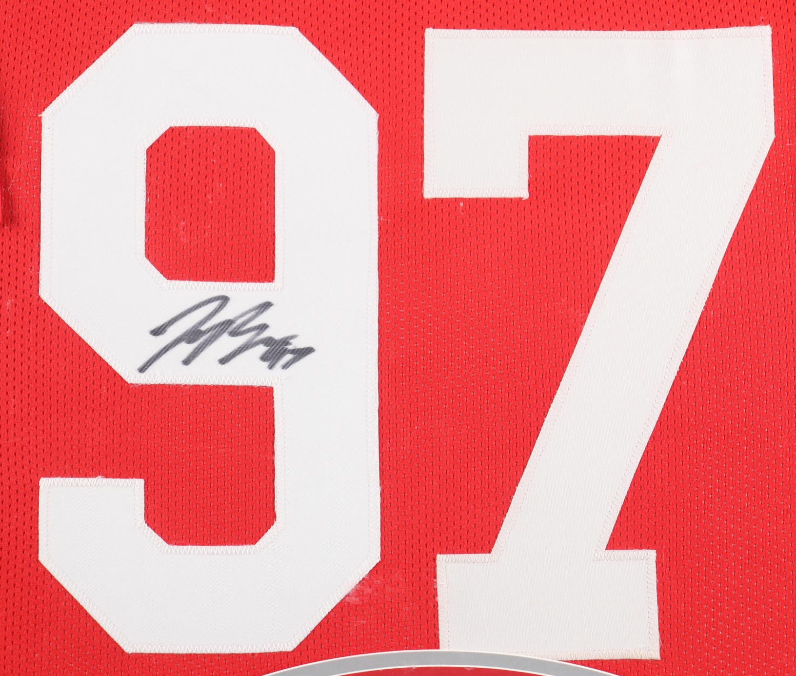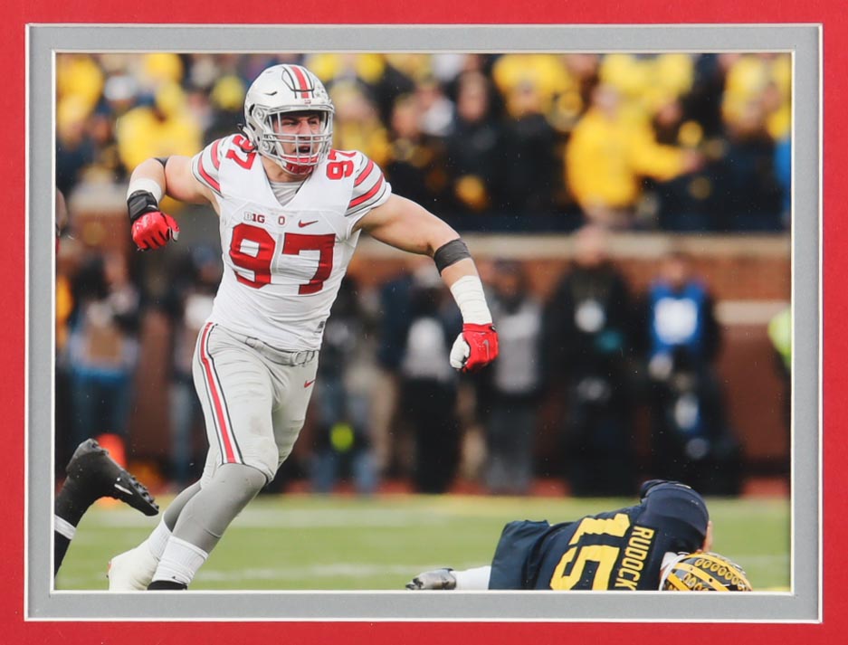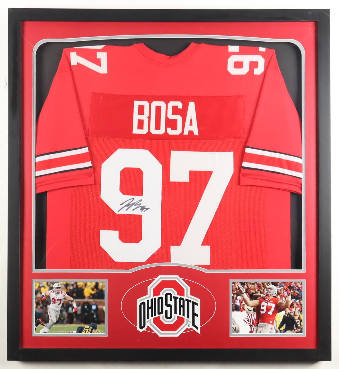 Custom frame measures 34" x 37" in size and features a jersey that has been hand-signed by Nick Bosa.
