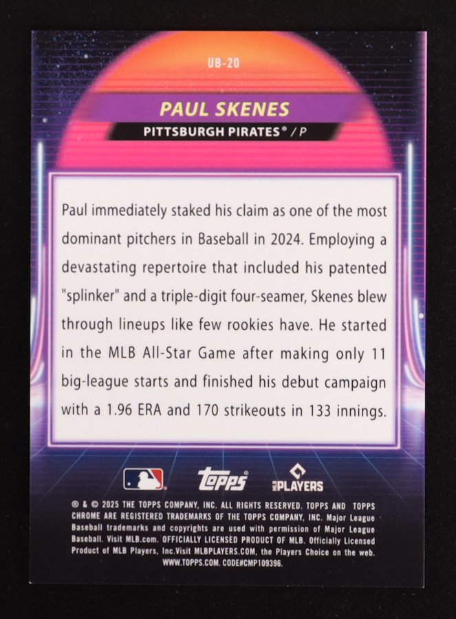 Paul Skenes 2025 Topps Chrome Ultraviolet Beam #UB-20 #08/50
