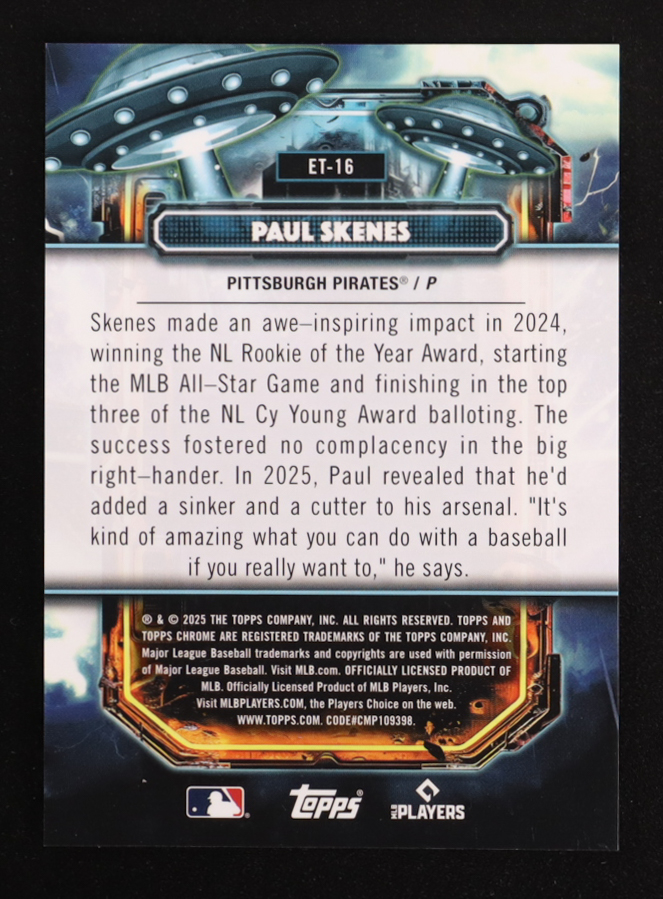 Paul Skenes 2025 Topps Cosmic Chrome Extraterrestrial Talent Black Eclipse Refractors #ET-16 #09/10