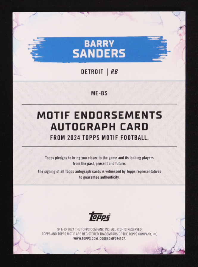 Barry Sanders 2023 Topps Motif Endorsements Pyrrol Scarlet #MEBS #1/2