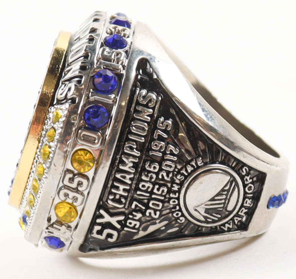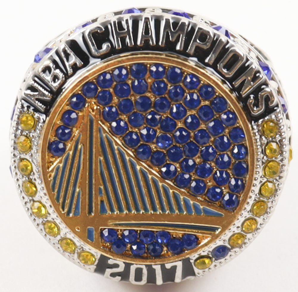 2017 Golden State Warriors NBA Finals Replica Ring. Please see photos for details regarding the condition of the item. Note that the item is unsigned and does come with the original packaging.