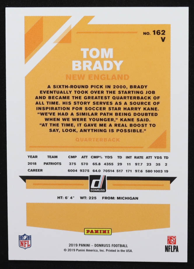 Tom Brady 2019 Panini Donruss Photo Variation Stat Line Purple #162V #444/500