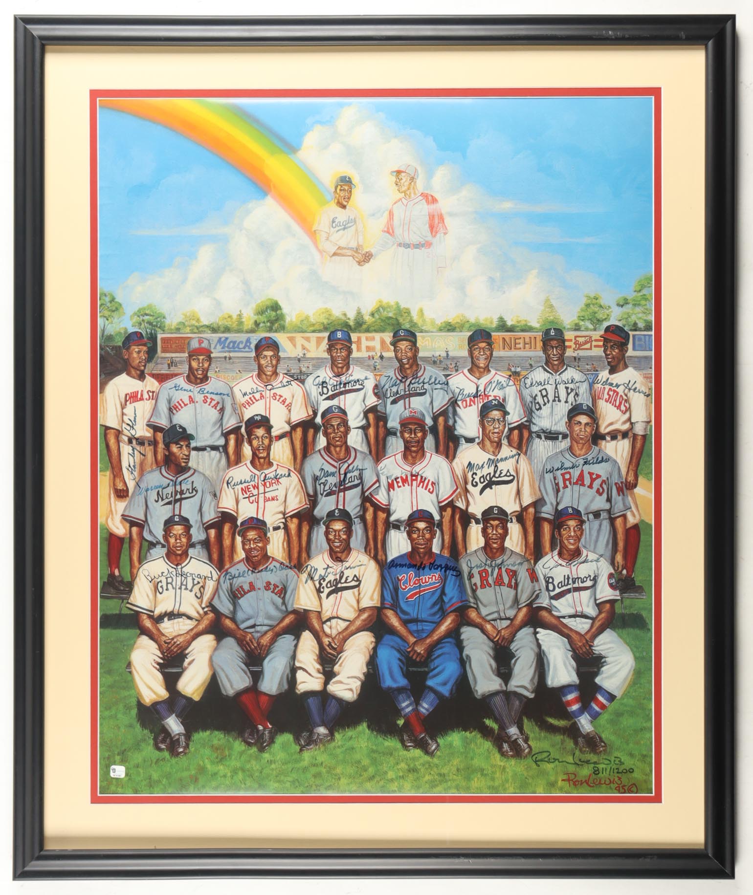 Negro League Legends Custom Framed Photo Signed by (20) with Buck Leonard, Monte Irvin, Buck O'Neil, Bill Cash (Beckett)