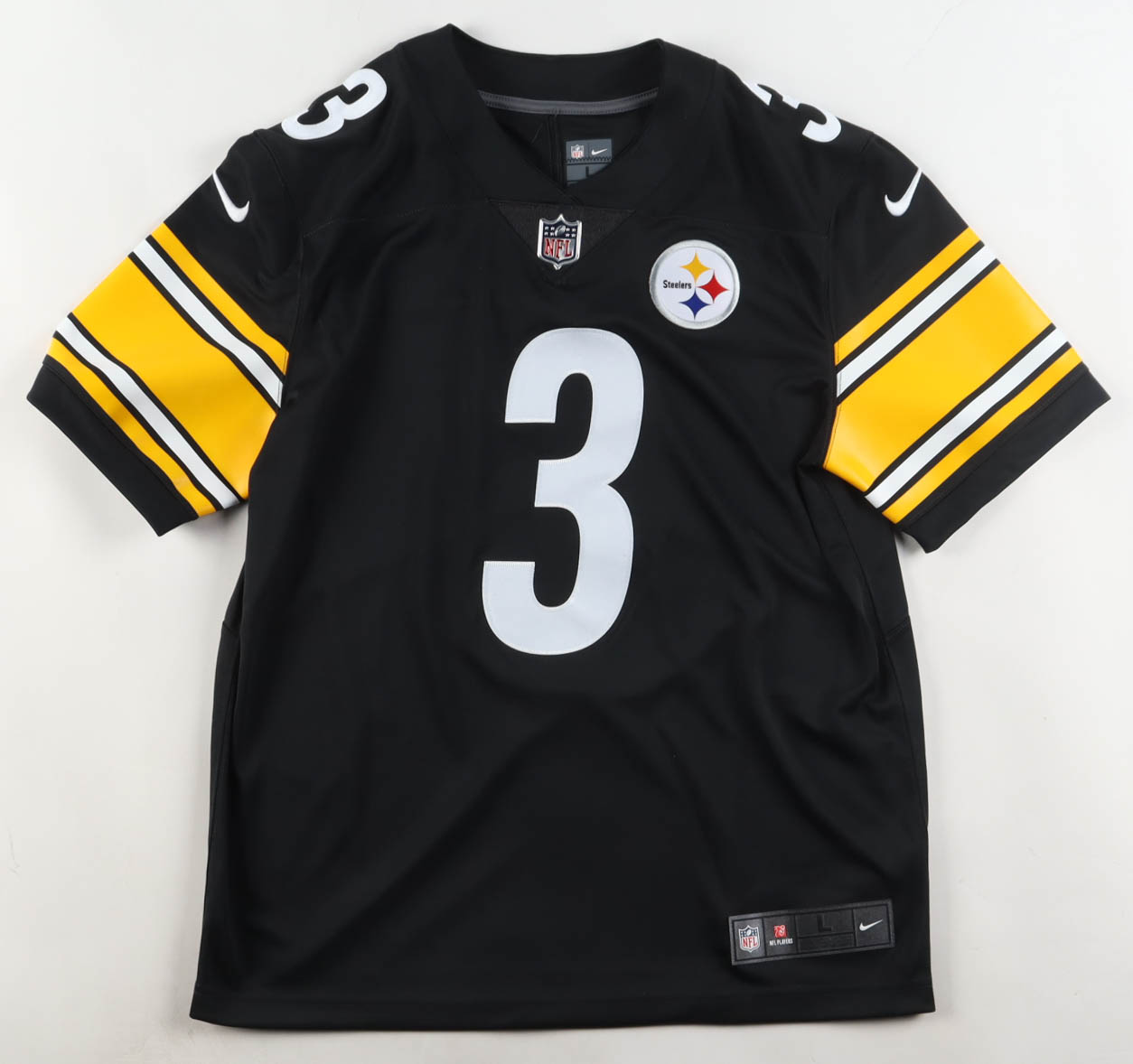 Nike authentic jersey with everything sewn on, size L. Hand-signed by Russell Wilson (Pittsburgh Steelers).