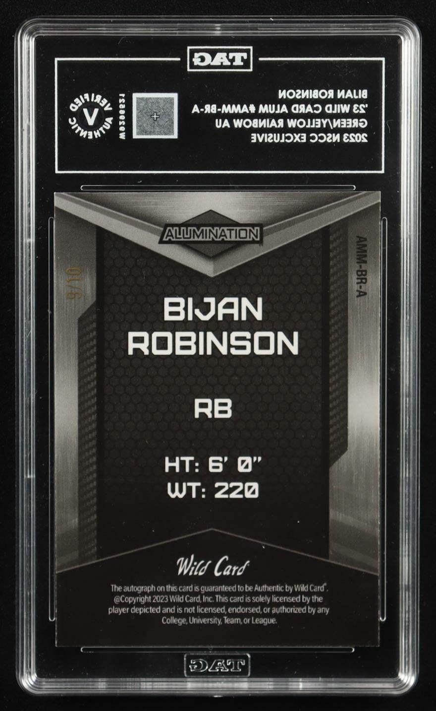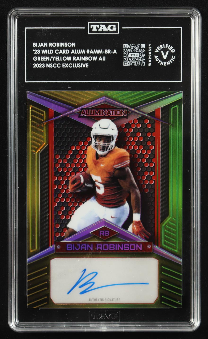 Bijan Robinson 2023 Wild Card Alumination Autograph Green Yellow Rainbow Foil #AMM-BR-A #09/10 RC (TAG Authentic)