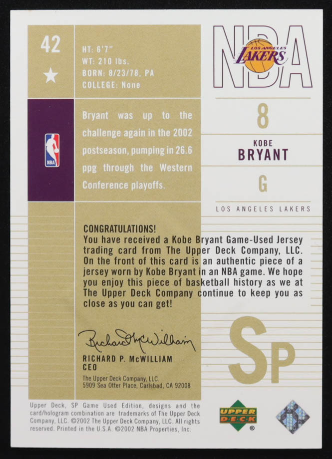 Kobe Bryant 2002-03 SP Game Used #42 SP JSY