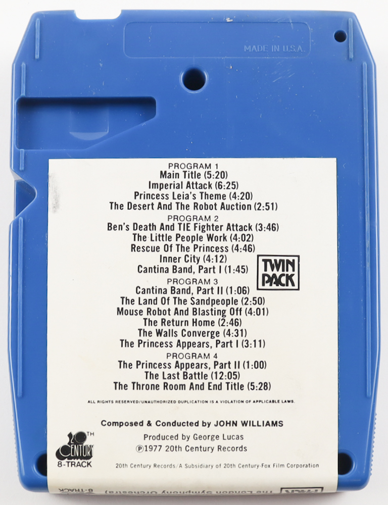 1977 "STAR WARS"20th Century Fox 8 Track Tape. Please see photos for details regarding the condition of the item. Note that the item is unsigned. Please see photos for more details regarding the condition of the item.