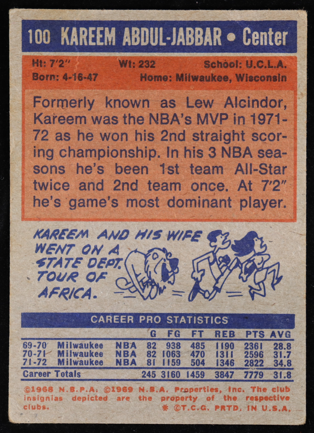Kareem Abdul-Jabbar 1972 Topps #100
