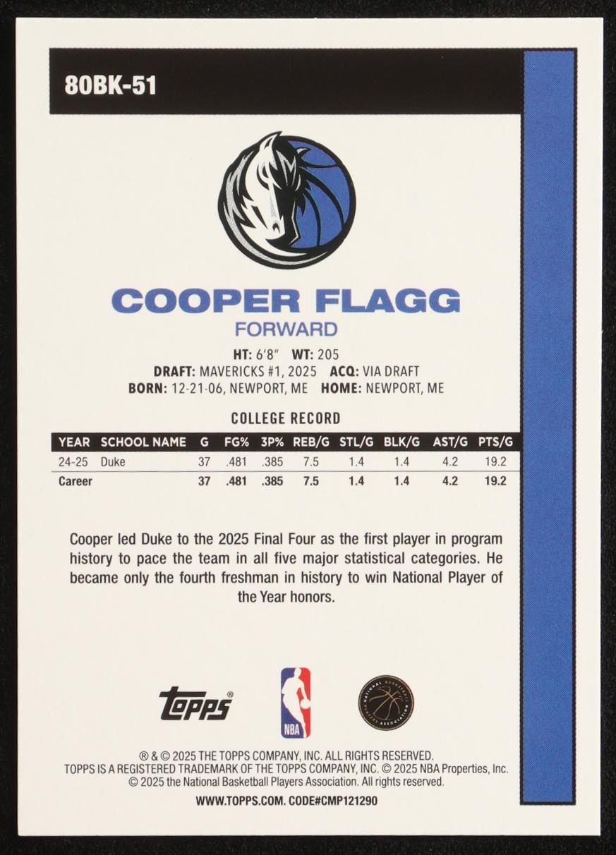 Cooper Flagg 2025-26 Topps '80-81 Topps #80BK51 RC