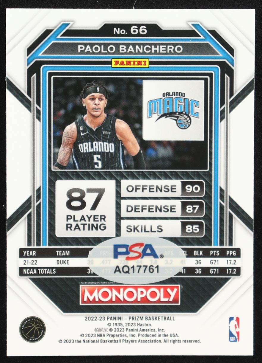 Paolo Banchero 2022-23 Panini Monopoly Prizm Auto #66 RC