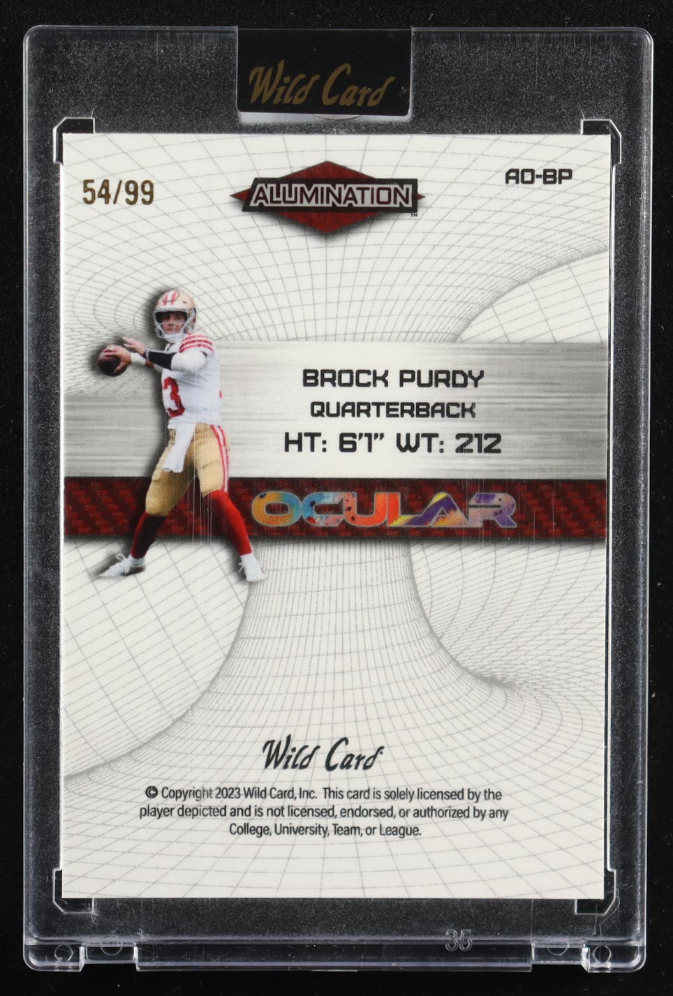 Brock Purdy 2023 Wild Card Alumination Ocular Orange Red Rainbow Foil #AO-BP #54/99