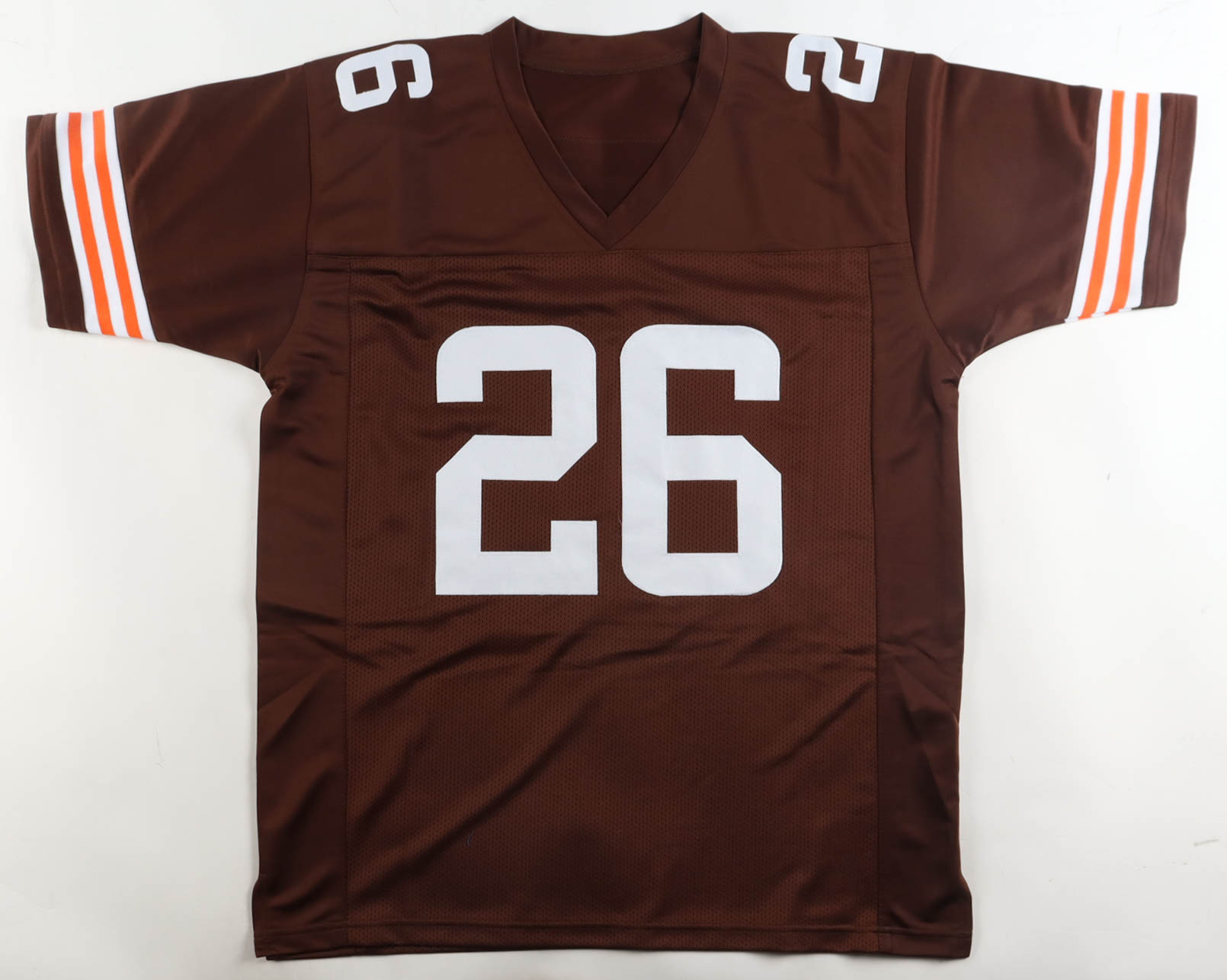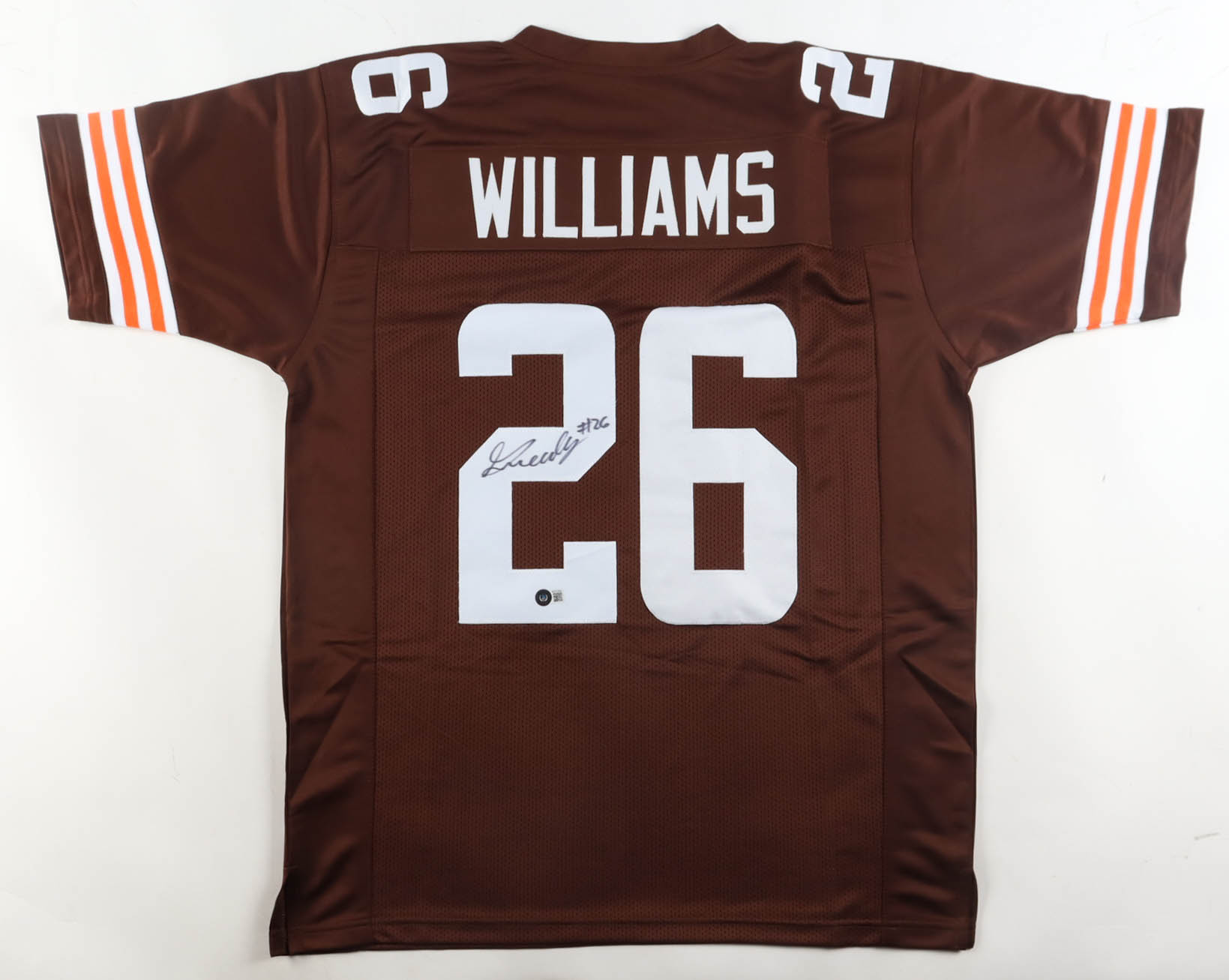 Custom jersey with everything sewn on, size XL. Hand-signed by Greedy Williams (Cleveland Browns).