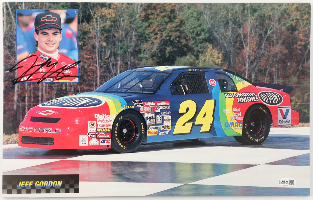 Custom matted photo measures 10.5" x 16.5" in size. Hand-signed by Jeff Gordon (HOF).