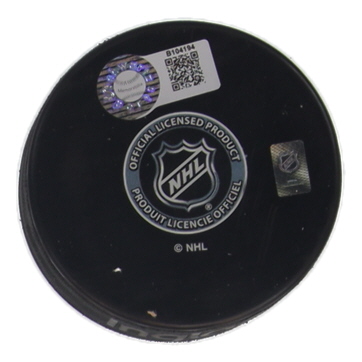 St. Louis Blues logo hockey puck has been hand-signed by Brett Hull.