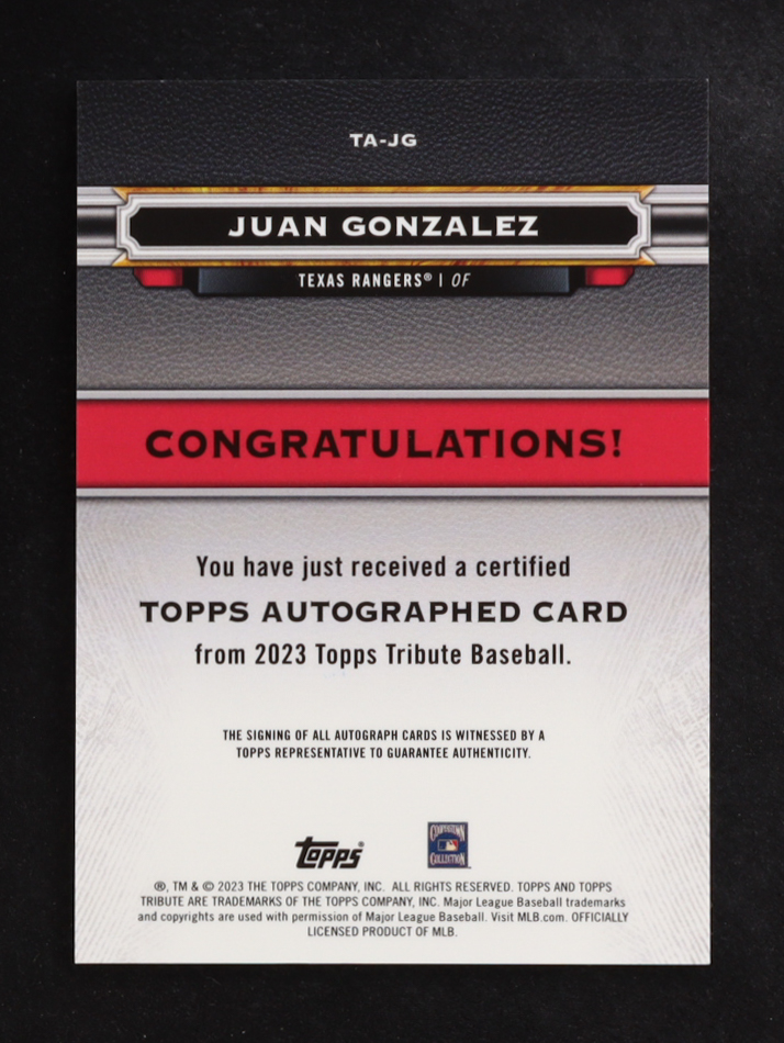Juan Gonzalez 2023 Topps Tribute Autographs #TAJG #021/199