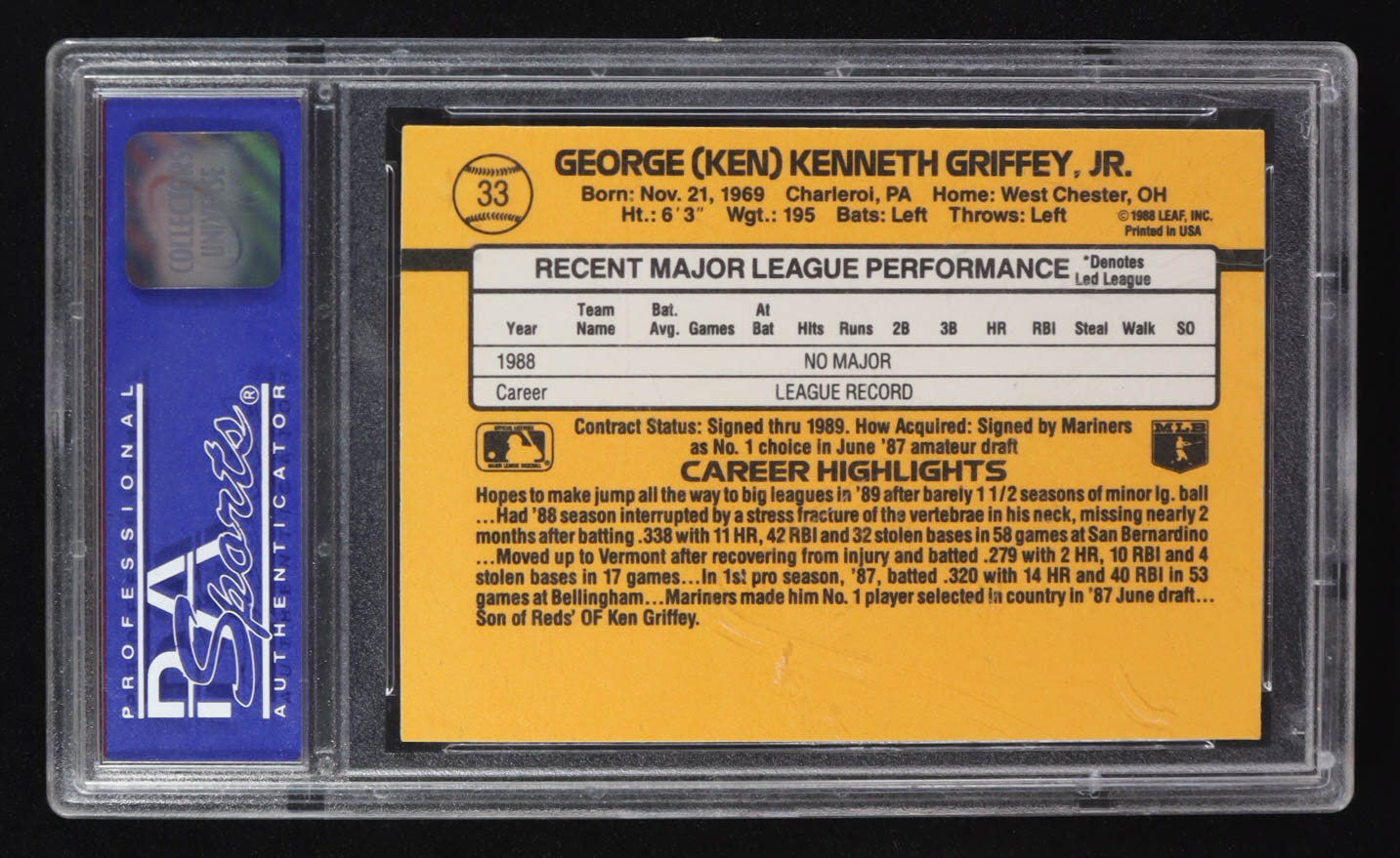 Ken Griffey Jr. 1989 Donrus Rated Rookie #33 RC (PSA 9)
