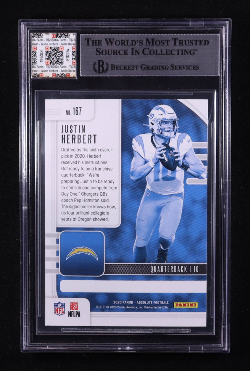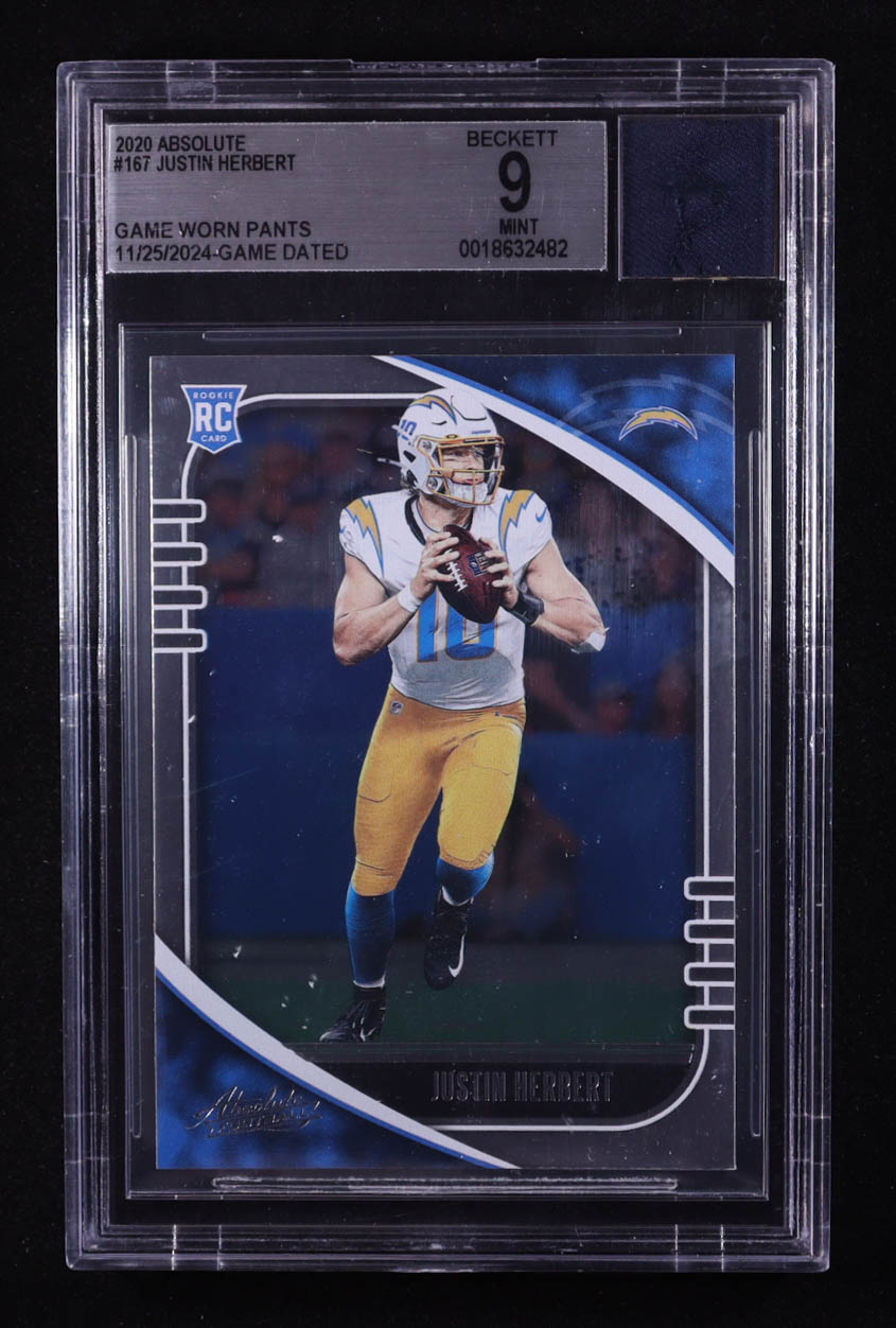 Justin Herbert 2020 Absolute #167 RC with Game-Used Pants Piece (BGS 9)