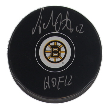 Adam Oates Signed Bruins Logo Hockey Puck Inscribed "HOF 12" (Schwartz)