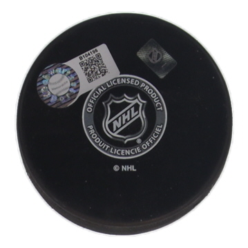 Boston Bruins logo hockey puck has been hand-signed and inscribed by Adam Oates (HOF).