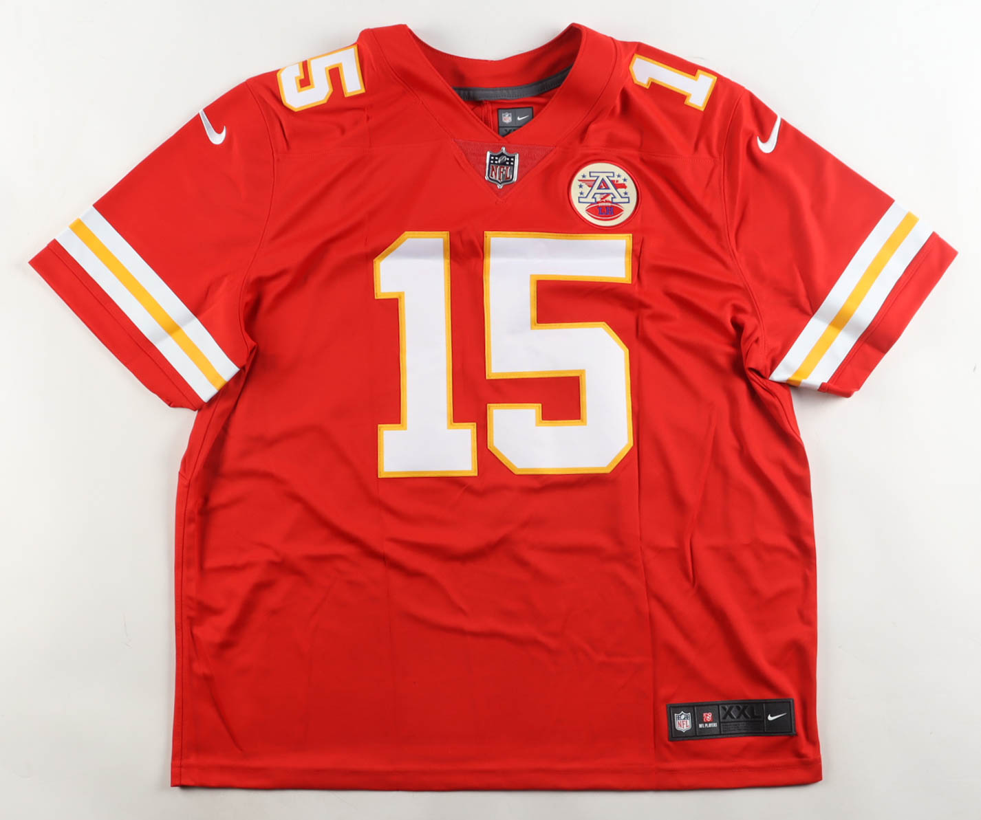 Nike authentic jersey with everything pressed on, size XXL. Hand-signed by Patrick Mahomes II (Kansas City Chiefs).