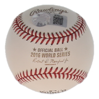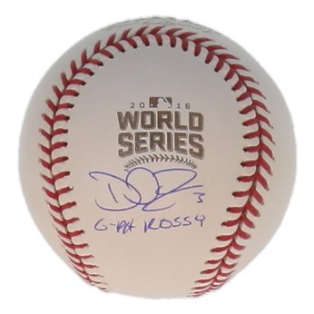 Rawlings Official 2016 World Series logo baseball has been hand-signed and inscribed by David Ross (Chicago Cubs).