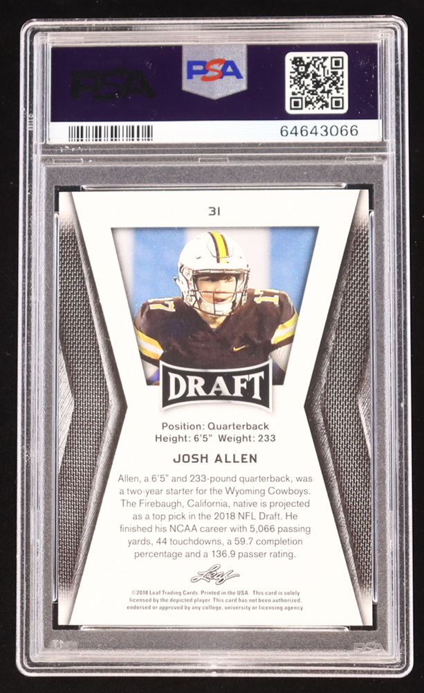Josh Allen 2018 Leaf Draft Gold #31 RC (PSA 10)