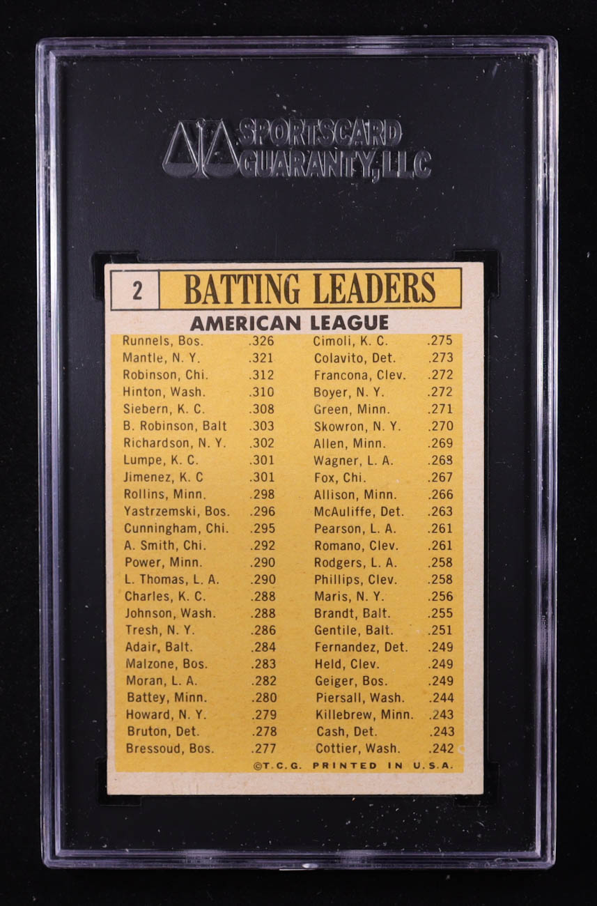 Pete Runnels / Mickey Mantle / Floyd Robinson / Norm Siebern / Chuck Hinton 1963 Topps #2 / AL Batting Leaders (SGC 5.5)