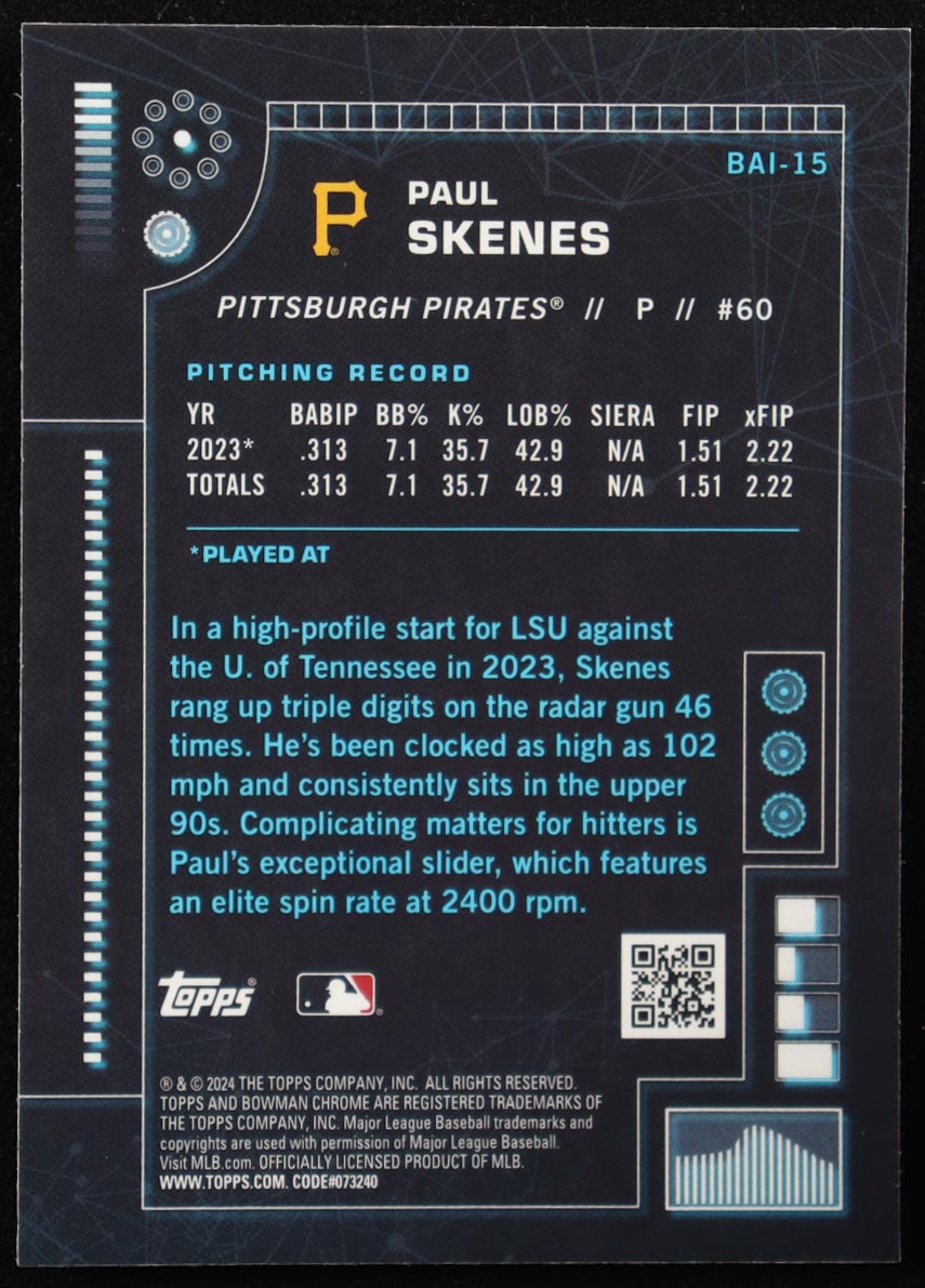 Paul Skenes 2024 Bowman Chrome Bowman AI #BAI15 RC