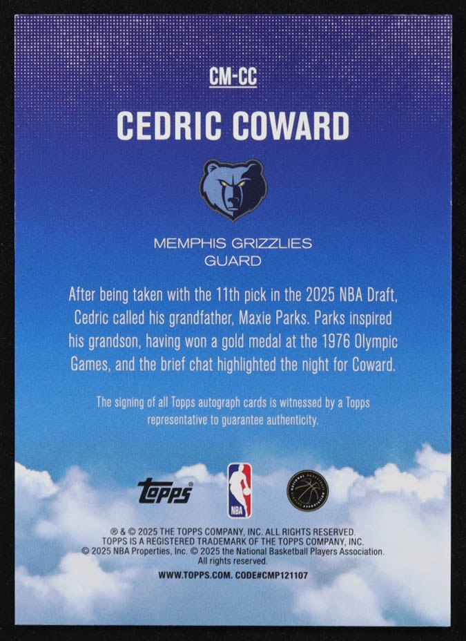 Cedric Coward 2025-26 Topps Contemporary Marks #CMCC RC
