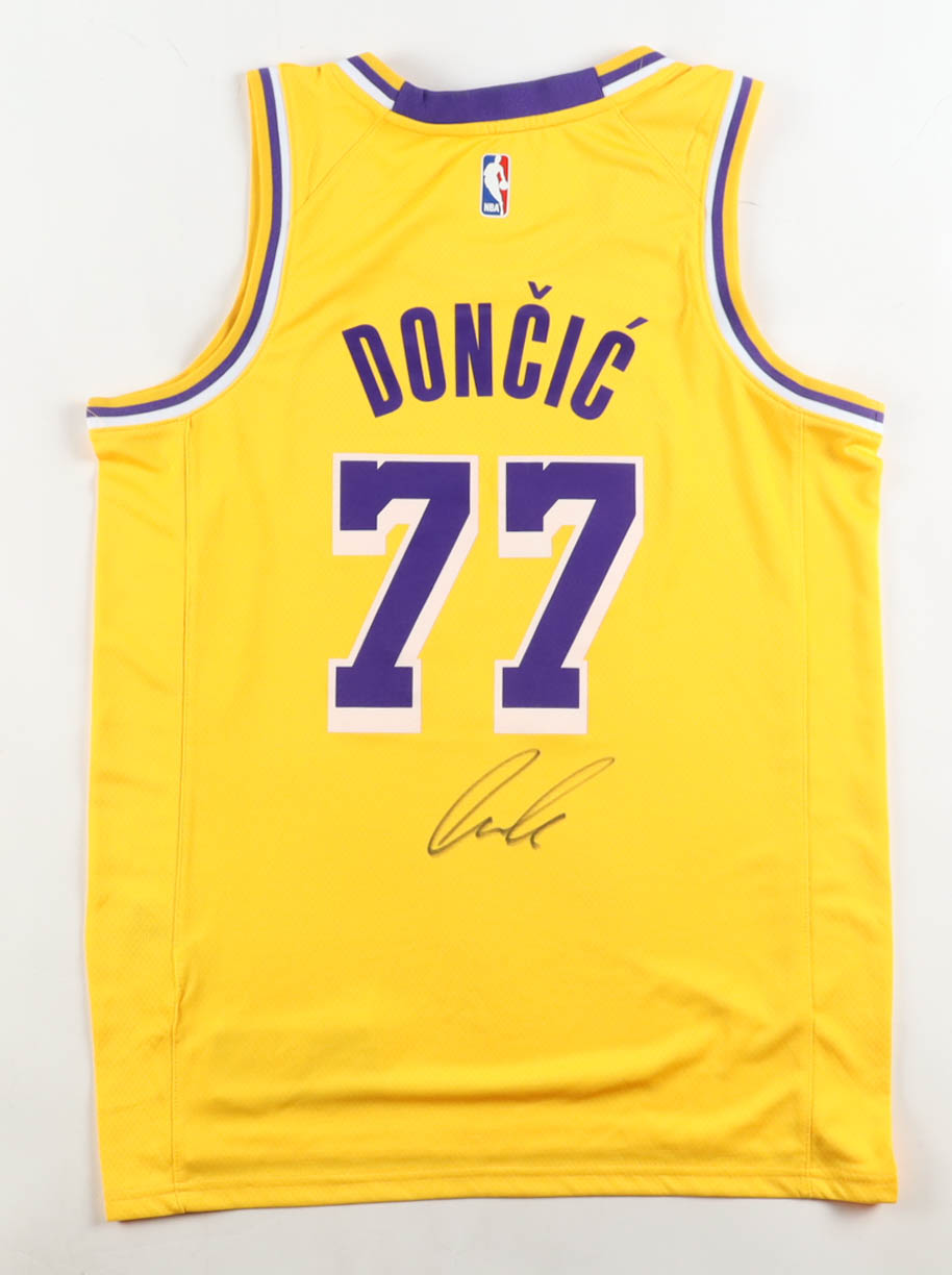 Nike authentic jersey with everything pressed on, size 48. Hand-signed by Luka Doncic (Los Angeles Lakers).