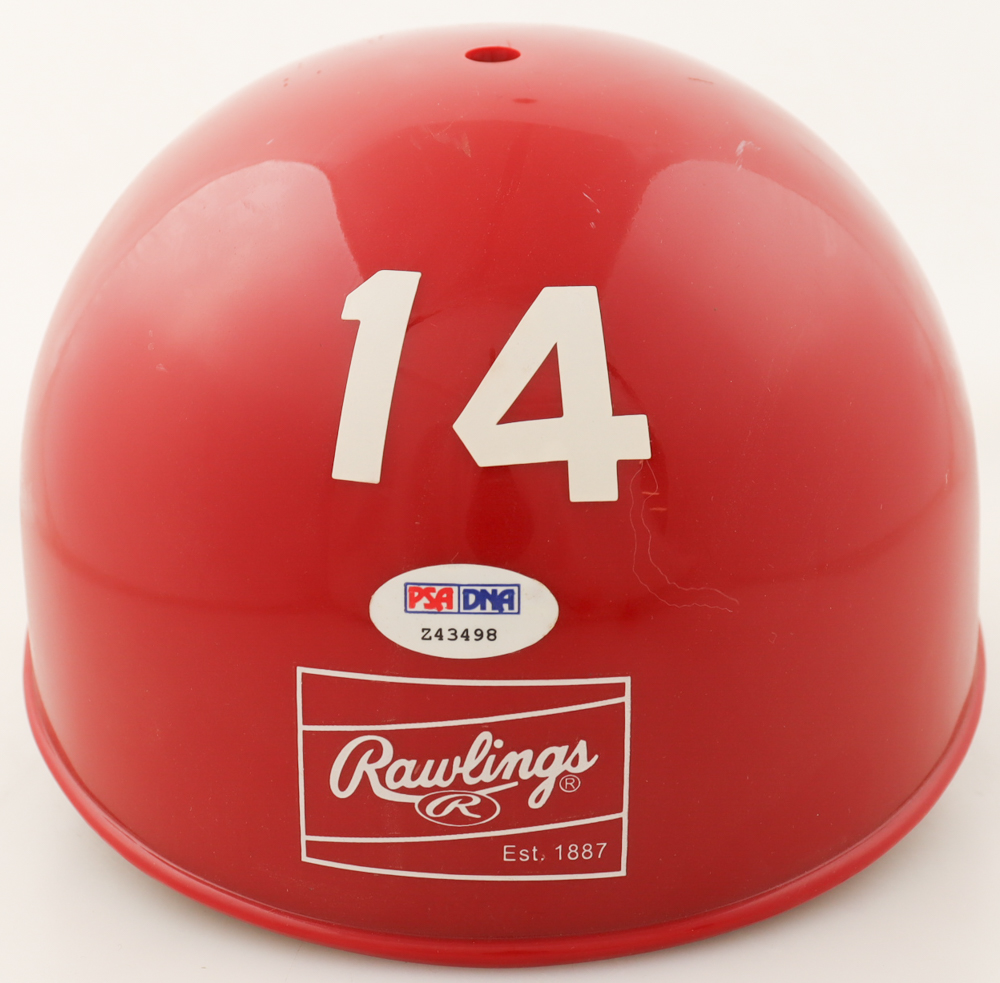 Rawlings Cincinnati Reds full-size souvenir batting helmet has been hand-signed and inscribed by Pete Rose (D. 2024).