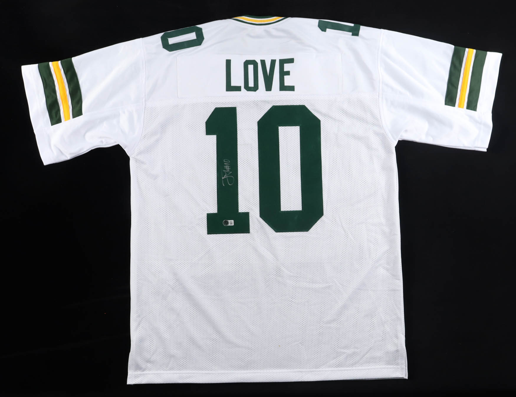 Custom jersey with everything sewn on, size XL. Hand-signed by Jordan Love (Green Bay Packers).