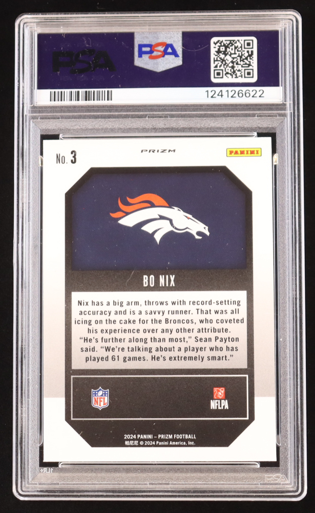 Bo Nix 2024 Panini Emergent Green Prizm #3 RC (PSA 10)