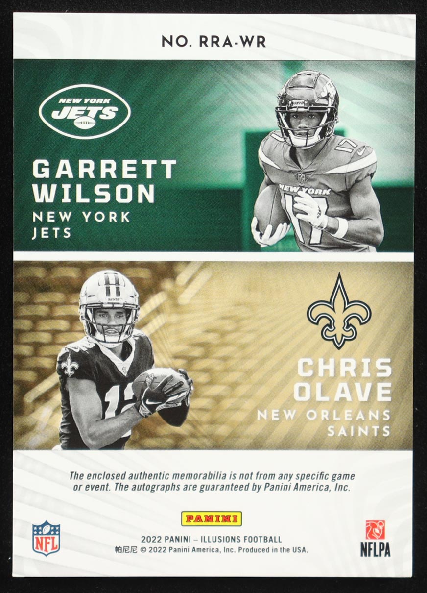 Garrett Wilson / Chris Olave 2022 Panini Illusions Rookie Reflections Dual Patch Autographs Gold #13 #8/10