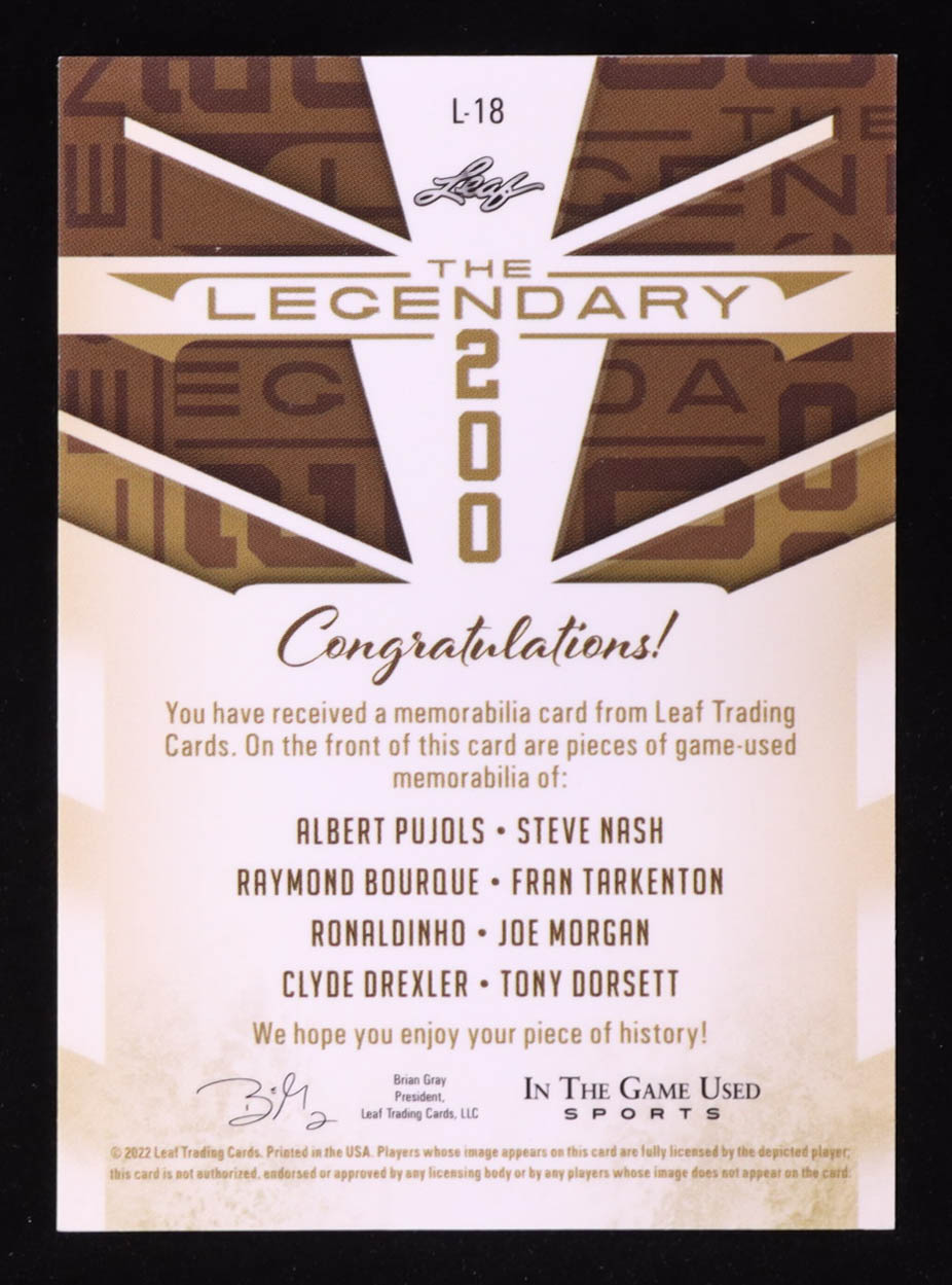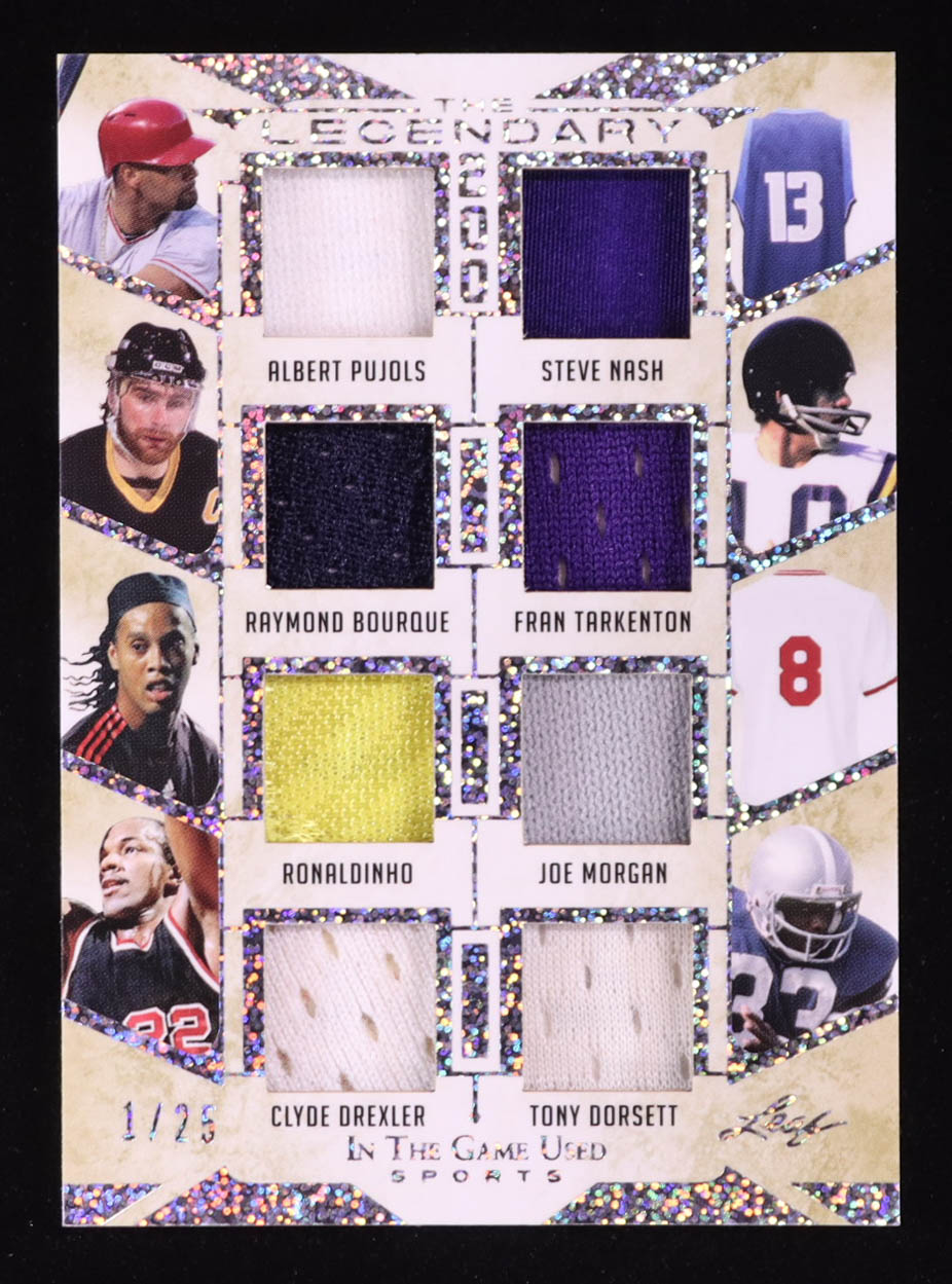 2022 Leaf ITG Used The Legendary 200 Sparkle Silver #L18 Albert Pujols / Steve Nash / Raymond Bourque / Fran Tarkenton / Ronaldinho / Joe Morgan / Clyde Drexler / Tony Dorsett #01/25