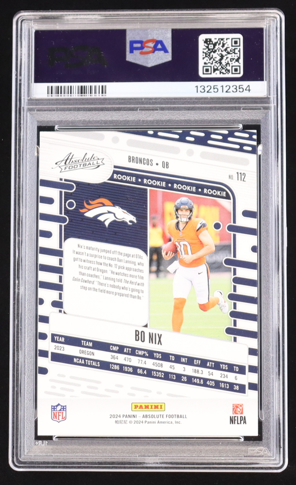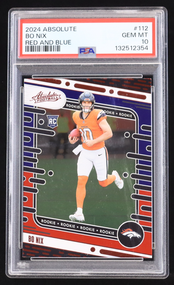 Bo Nix 2024 Panini Absolute Red And Blue #112 RC (PSA 10)