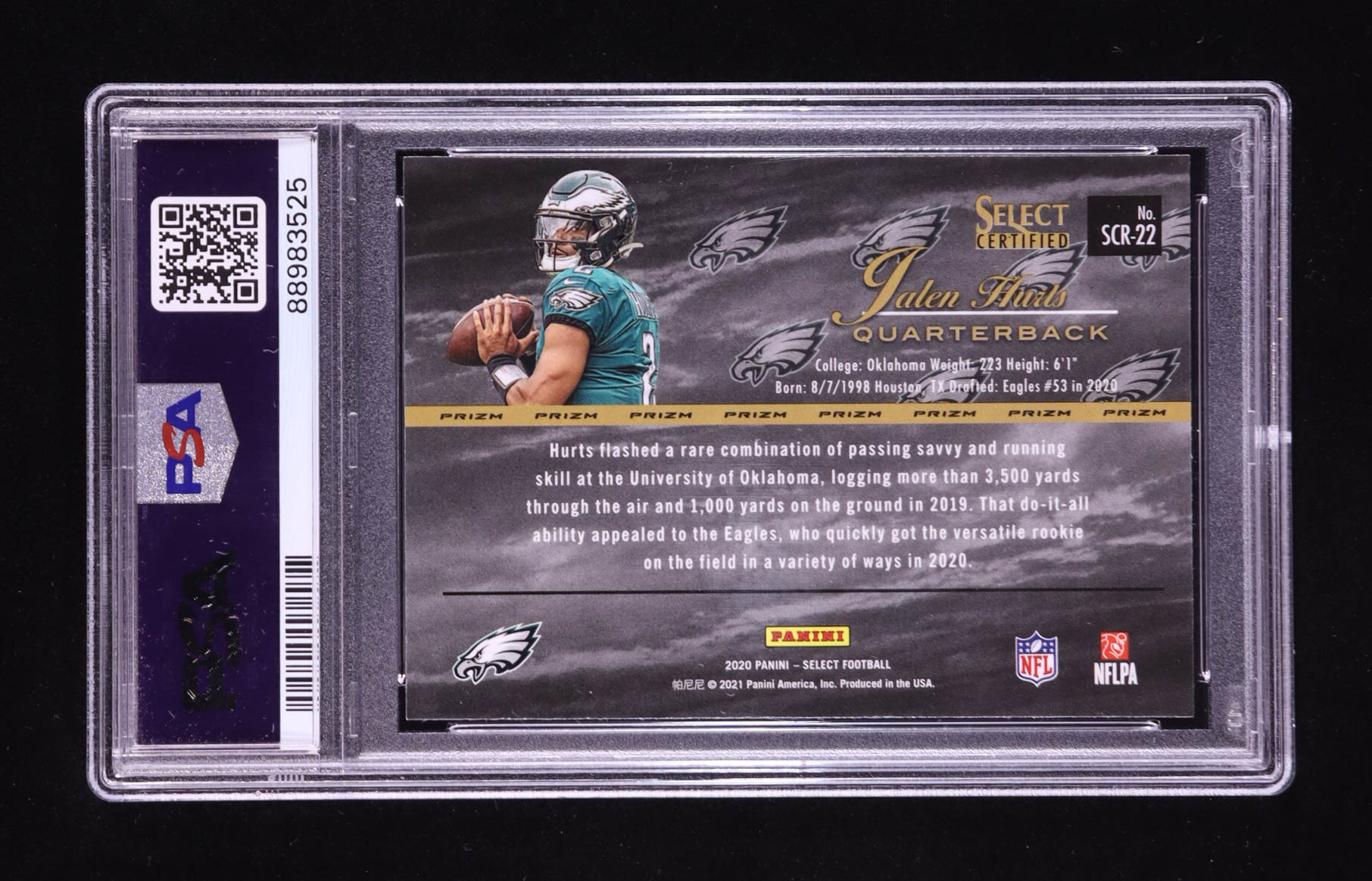 Jalen Hurts 2020 Select Select Certified Rookies Prizm #22 RC (PSA 9)