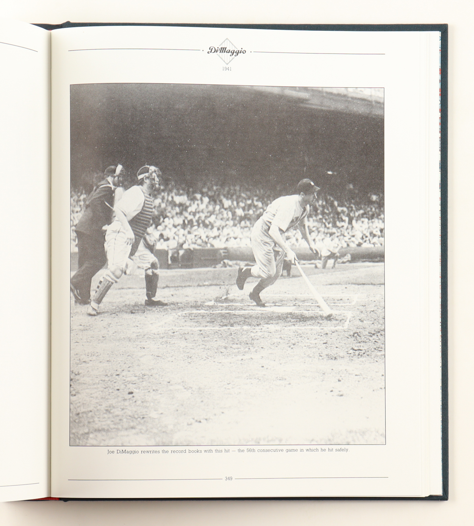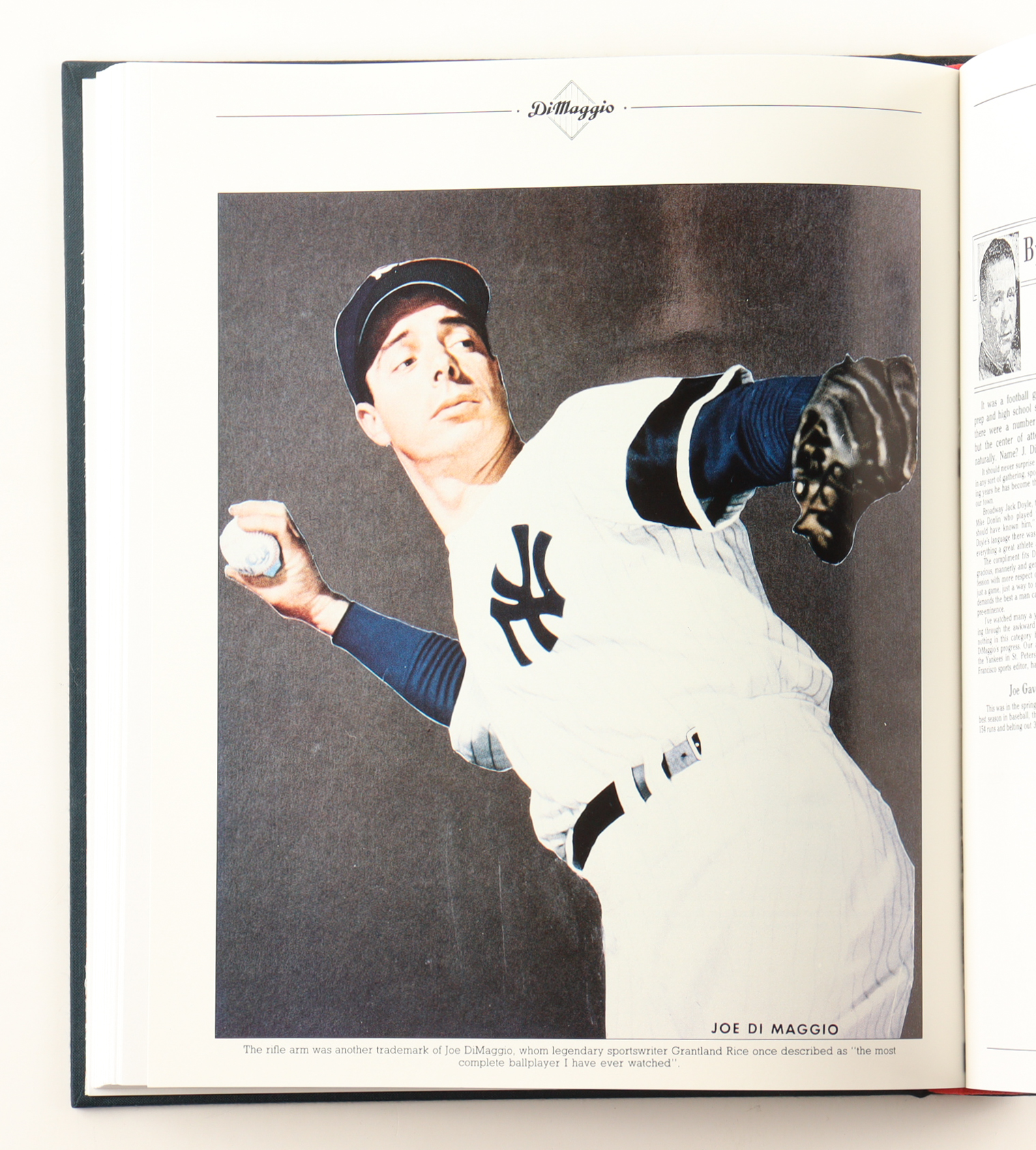 Two volumes. Compiled and edited by Richard Whittingham. Introduction and commentaries by Joe DiMaggio. First edition, first printing. Signed by DiMaggio in blue marker on DiMaggio frontispiece in Vol. I, with a Beckett authentication sticker. Publisher's blue cloth with titles in gilt to spines, red, white, and blue marbled endpapers, set designed by Susan Kinealy; housed in publisher's red slipcase with DiMaggio photo to front panel, and gilt lettering to front panel and spine. Fine set; about fine slipcase, with a touch of rubbing to spine, and a couple of very light marks to rear panel. Overall, a fantastic two-volume set. FROM B&B: The DiMaggio Albums traces DiMaggio's life from the minor leagues to his major league retirement with a variety of unique archival materials, including news clippings, photos, posters, and more. DiMaggio played all thirteen seasons of his career with the New York Yankees and was selected as an All-Star thirteen times. With his exemplary hitting and fielding (he was nicknamed "The Yankee Clipper" because of how he sailed around the outfield) he helped power the Yankees to nine World Series titles. He holds the record for the longest hitting streak, at 56 games, which is considered one of the most statistically remarkable records in all of sports. Outside of baseball, he was known for his high-profile marriage with Marilyn Monroe. DiMaggio was one of the rare athletes that transcended his sport: his association with a bygone era of America was noted in Simon and Garfunkel's Grammy Award-winning song, "Mrs. Robinson." Ted Williams said, "His career cannot be summed up in numbers and awards. It might sound corny, but he had a profound impact on the country."