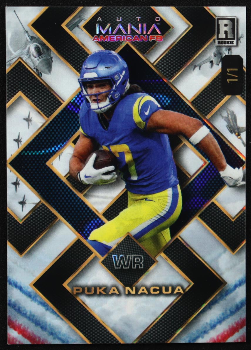 Puka Nacua 2023 Wild Card Auto Mania American FB Squares Fighter Jets Lava #AMASQP-PN #1/1 RC