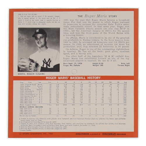 1964 Auravison Unused Roger Maris Yankees 33 Rpm Record