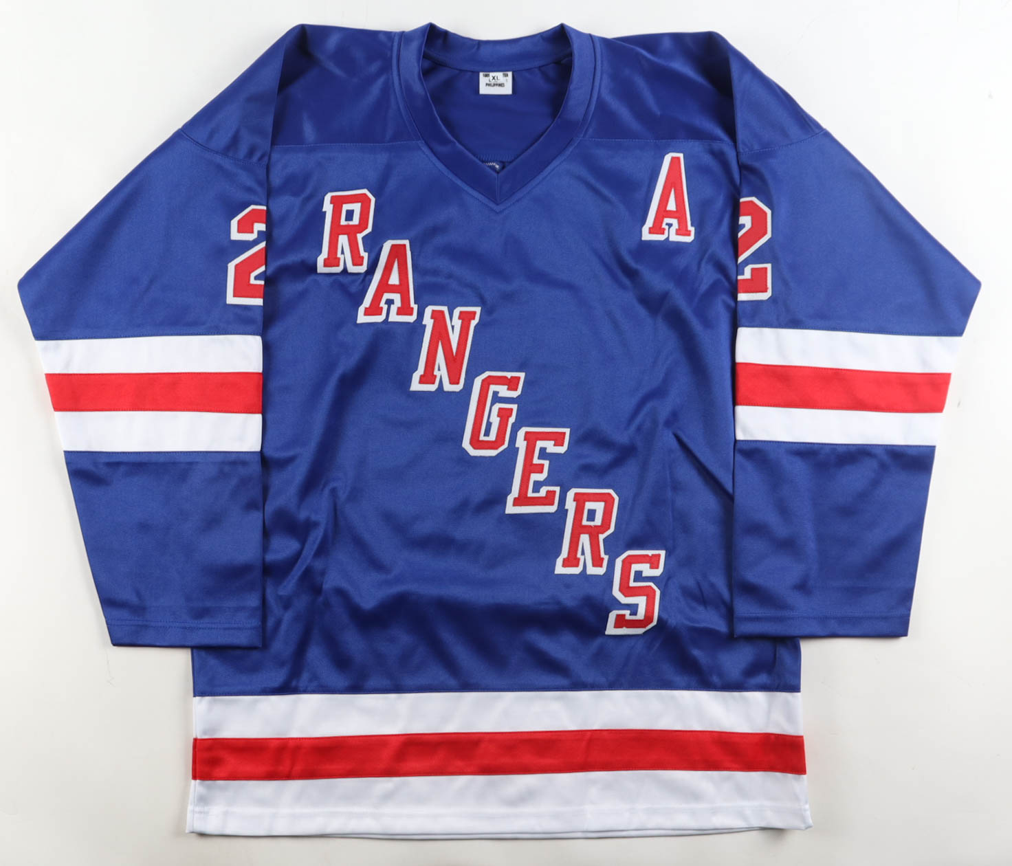 Custom jersey, everything is sewn on, size XL. Hand-signed and inscribed by Brad Park (HOF).