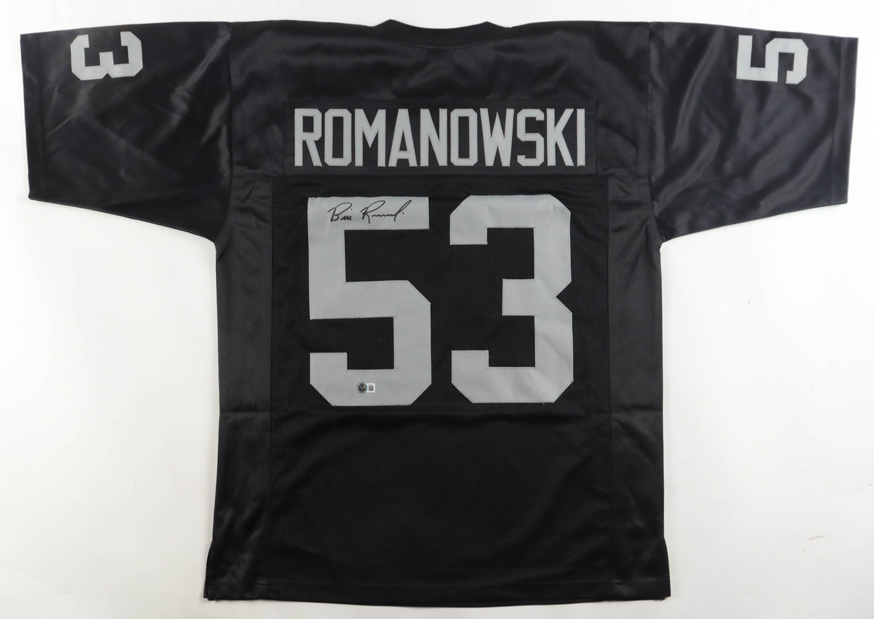 Custom jersey with everything sewn on, size XL. Hand-signed by Bill Romanowski.