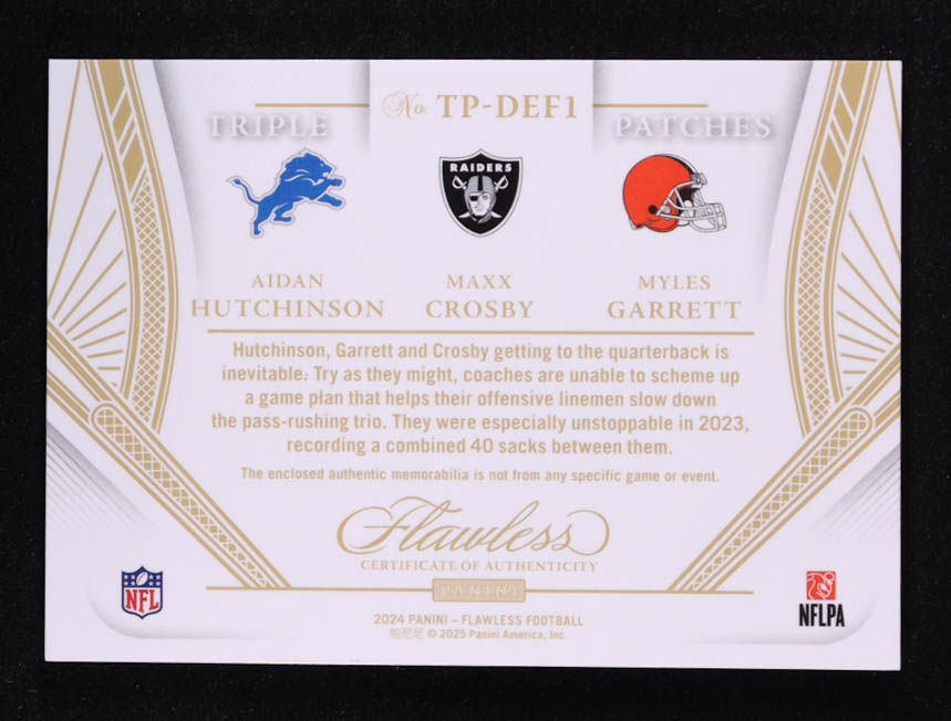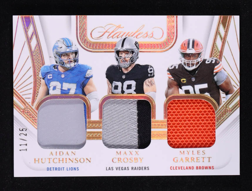 Aidan Hutchinson / Maxx Crosby / Myles Garrett 2024 Panini Flawless Triple Patches #19 #11/25