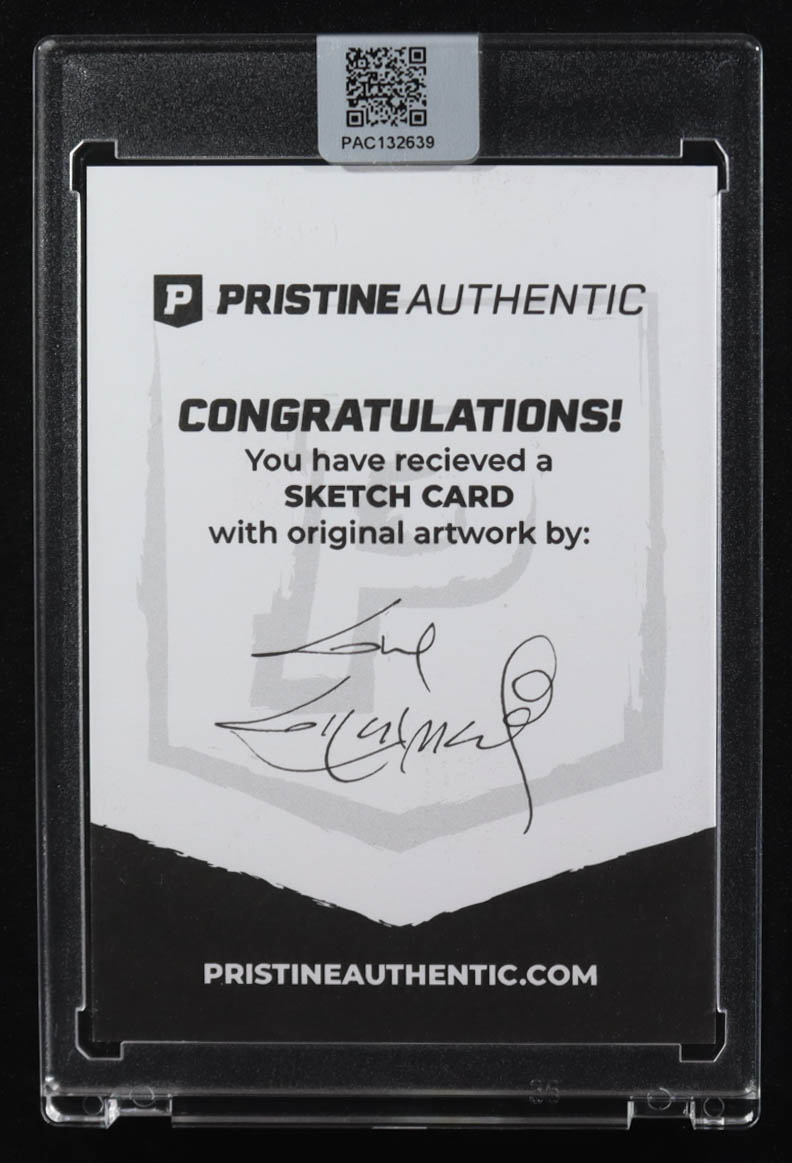 This sketch card includes original art by world-renowned illustrator, Guy Gilchrist.