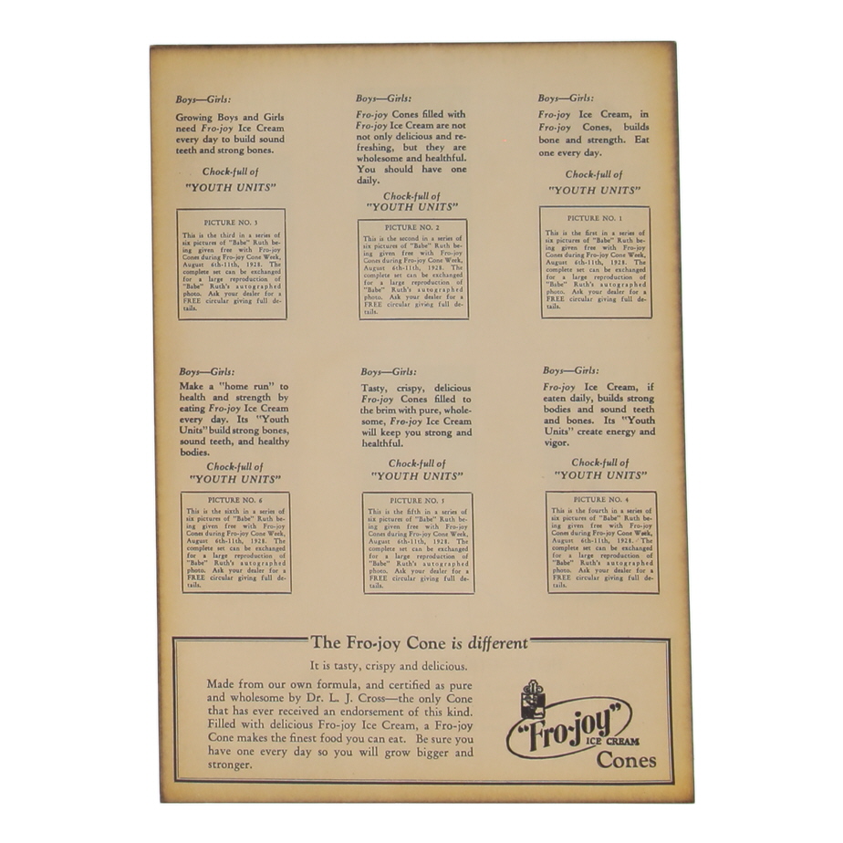 1979 VIntage Babe Ruth Fro-Joy Ice Cream Uncut Card Sheet