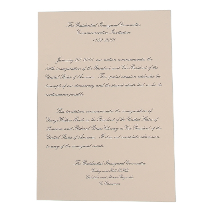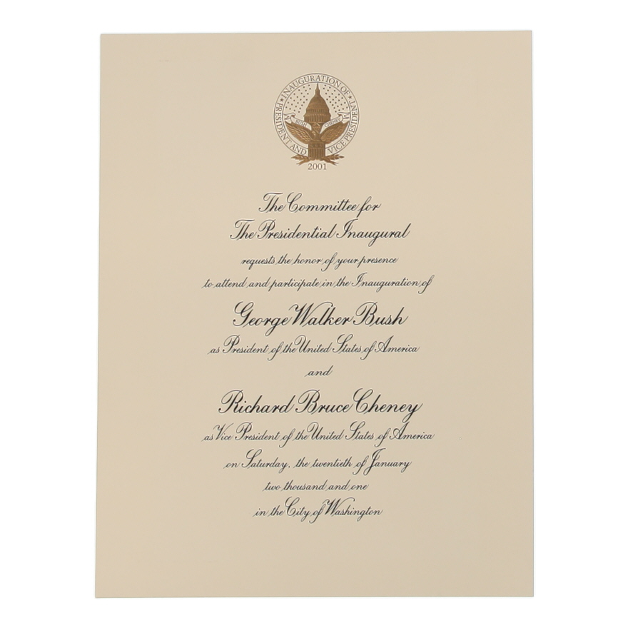 2001 President George W. Bush Original Two-Piece Inauguration Invitation Set