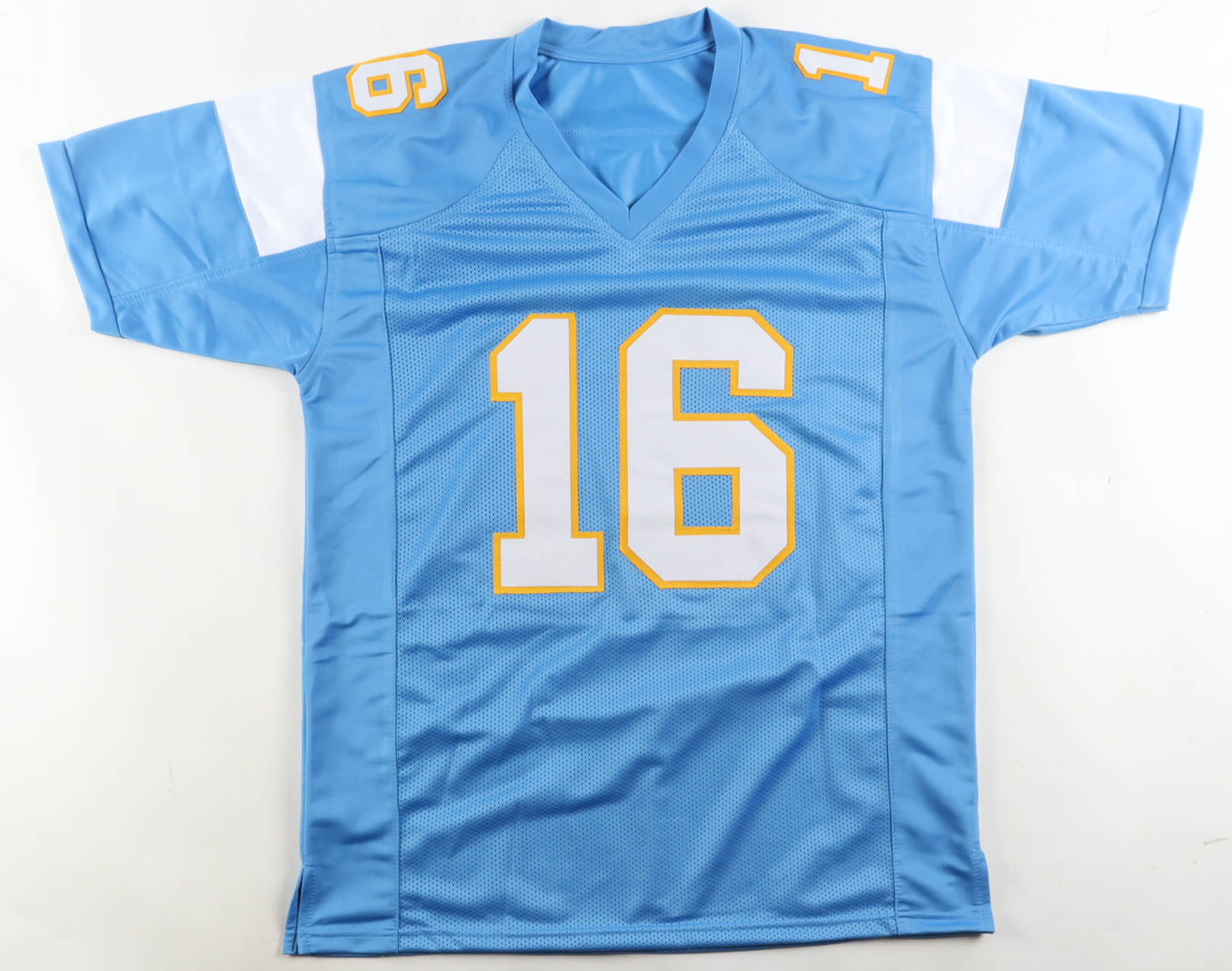 Custom jersey with everything sewn on, size XL. Hand-signed and inscribed by Ryan Leaf.
