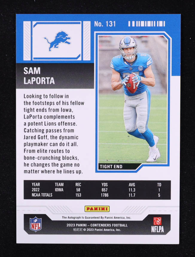 Sam LaPorta 2023 Panini Contenders Conference Ticket #131 Autograph #12/75 RC